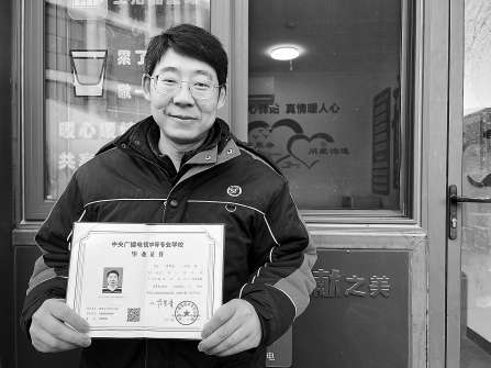 “同學(xué)們,我們來看一下這道題……”午飯時間,豐臺區(qū)西國貿(mào)汽服基地物流園區(qū)的一處順豐快遞站點(diǎn)內(nèi),快遞小哥蔣風(fēng)登利用休息間隙,打開手機(jī)網(wǎng)課開始了學(xué)習(xí)?!叭ツ晡夷玫搅酥袑W(xué)歷,現(xiàn)在又報了大專課程,通過學(xué)習(xí)提升了自己的學(xué)歷和各方面能力。”蔣風(fēng)登特意向記者展示了他的學(xué)歷證書,臉上是掩不住的笑意。