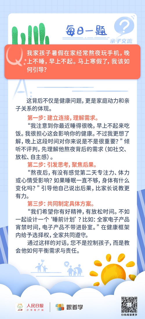 每日一題丨孩子假期在家,經(jīng)常熬夜玩手機(jī)至凌晨,家長(zhǎng)該如何引導(dǎo)?