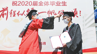 接過(guò)學(xué)位證書,本科畢業(yè)生蔡杰和院長(zhǎng)拍了一張合影。他說(shuō):“沒(méi)有遺憾了,這個(gè)畢業(yè)典禮特殊而完美!”