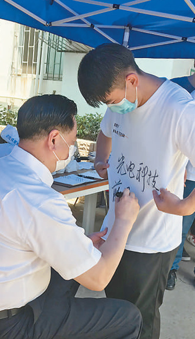 8日,華中科技大學(xué)校長(zhǎng)為畢業(yè)生寫下祝福語(yǔ)。朱必勇攝