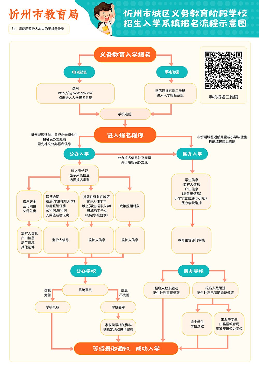 忻州市城區(qū)義務(wù)教育階段學(xué)校招生入學(xué)系統(tǒng)報(bào)名流程示意圖