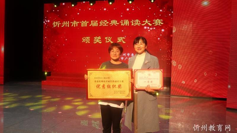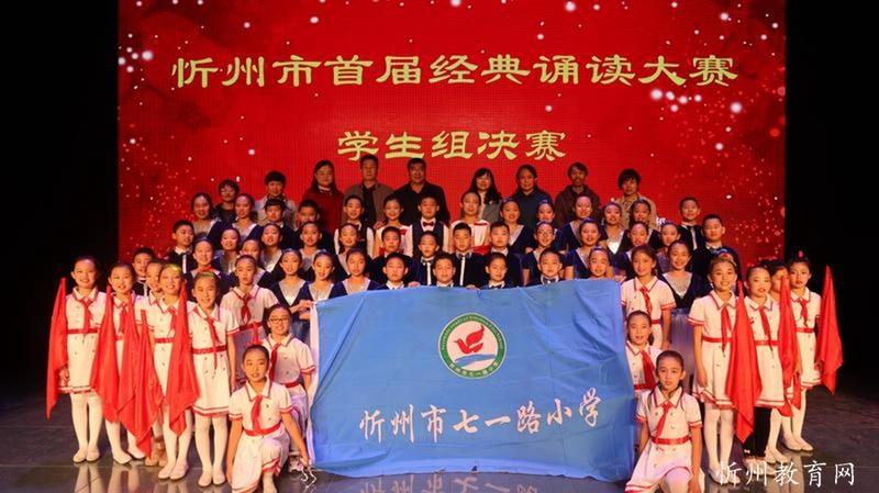 “共讀中華經(jīng)典,聆聽古詩書韻”。由中共忻州市委宣傳部主辦,忻州市廣播電視臺承辦 “忻州市首屆經(jīng)典誦讀大賽”經(jīng)過初賽海選和緊張激烈的復賽和決賽,于11月1日落下帷幕。本次比賽學生組共有四十一個參賽節(jié)目,經(jīng)過角逐,有十個節(jié)目進入了決賽。決賽采取評委當場亮分,現(xiàn)場點評的方式,最終評出一等獎一名,二等獎二名,三等獎三名,最佳風采獎四名。七一路小學以98.51分的成績奪冠,榮獲學生組一等獎。同時學校也榮獲優(yōu)秀組織獎。