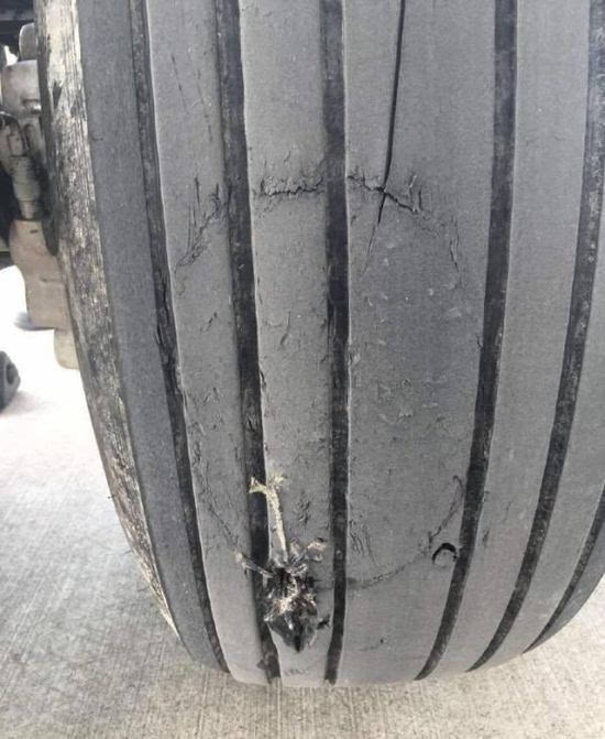 飛機(jī)輪胎受損嚴(yán)重