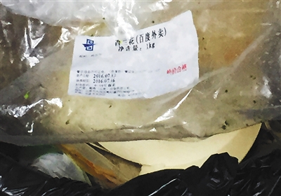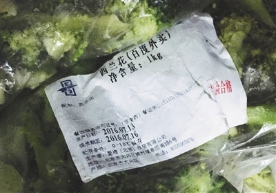 只見加熱后袋裝西蘭花標簽上的生產日期已被浸泡模糊。一名女店員直接用剪刀剪開兩袋,倒入盆內清洗,有些西蘭花顏色已變黃。該店員直接將變了顏色和蔫了的挑出,扔進垃圾桶。西蘭花的外包裝保質期顯示為7月13日至7月16日。凈含量為1kg。對于過期西蘭花為何還要用?一名女店員說:“今天用西蘭花配菜都是過期的,不用咋辦?”