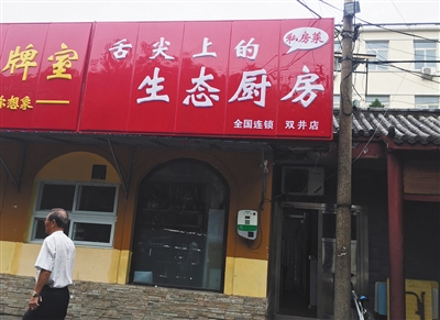 7月25日,北京朝陽區(qū)勁松一中南門西側的百度生態(tài)廚房雙井店,門口掛有標牌。