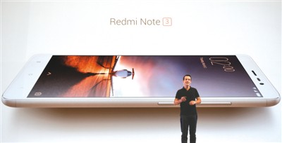 今年3月3日,在印度首都新德里,小米科技推出專門針對印度市場的紅米Note 3手機。圖為小米科技全球副總裁雨果·巴拉在發(fā)布會上介紹紅米Note 3手機。 新華社記者 畢曉洋攝