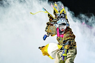 身穿京劇服飾的滑雪愛好者在吉林松花湖滑雪場滑雪。新華社發(fā)