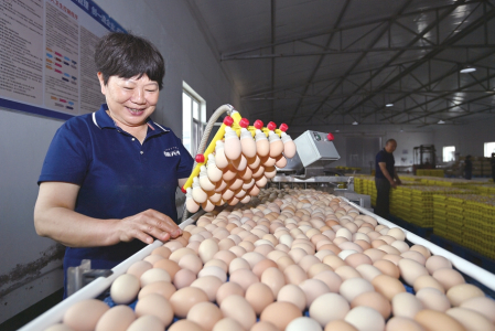 將檢驗(yàn)合格的雞蛋平穩(wěn)裝車(chē)運(yùn)往周邊超市。