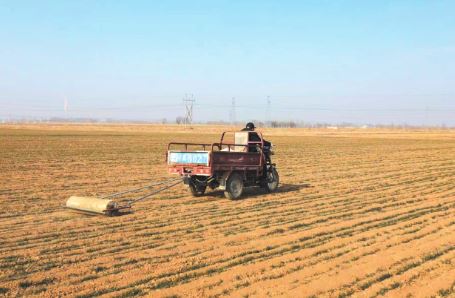 管護工人熟練地操作著磙子將麥田壓實