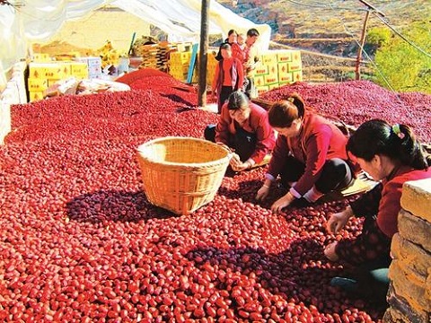 近年來(lái),臨縣縣委、縣政府大力實(shí)施紅棗品牌發(fā)展戰(zhàn)略,不斷提升加工轉(zhuǎn)化能力,將棗樹確定為“縣樹”,設(shè)立紅棗產(chǎn)業(yè)局,創(chuàng)立“臨縣紅棗”公共品牌,出臺(tái)了支持紅棗產(chǎn)業(yè)發(fā)展的15項(xiàng)優(yōu)惠政策,初步形成了“生產(chǎn)有基地、加工有龍頭、銷售有網(wǎng)絡(luò)、政策有傾斜”的紅棗產(chǎn)業(yè)發(fā)展格局。通過(guò)書記、縣長(zhǎng)為紅棗代言,舉辦紅棗旅游文化節(jié)、紅棗電商論壇,參加國(guó)內(nèi)各種博覽會(huì)、交易會(huì)等推介活動(dòng),擴(kuò)大了臨縣紅棗品牌影響力。目前,臨縣紅棗年產(chǎn)值突破6億元,占全縣農(nóng)業(yè)總產(chǎn)值的42%。棗區(qū)農(nóng)民紅棗收入占人均純收入的70%以上,紅棗產(chǎn)業(yè)已經(jīng)成為全縣農(nóng)民增收的一項(xiàng)主導(dǎo)產(chǎn)業(yè)。