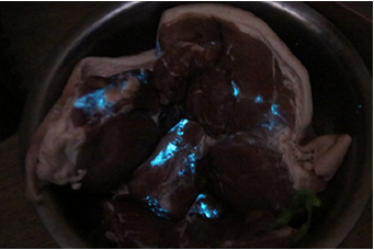 據(jù)媒體2010年12月6日報道,湖南長沙市個別市場銷售的豬肉在夜間居然能發(fā)出幽幽的藍光,這一現(xiàn)象引起廣大消費者的恐慌。湖南省獸藥飼料監(jiān)察所所長鄧云波介紹,豬肉之所以夜間發(fā)光是生豬屠宰后被發(fā)光菌所污染導致。
