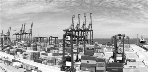 科倫坡南港集裝箱碼頭是中國和斯里蘭卡共建“21世紀海上絲綢之路”務實對接標桿性項目,是南亞最深的集裝箱碼頭。據(jù)測算,南港碼頭項目在35年合同期直接稅賦將達18億美元。同時,在建設和經(jīng)營期間可分別為當?shù)貏?chuàng)造3000個和7500個直接就業(yè)機會。圖為科倫坡南港集裝箱碼頭。 新華社發(fā)