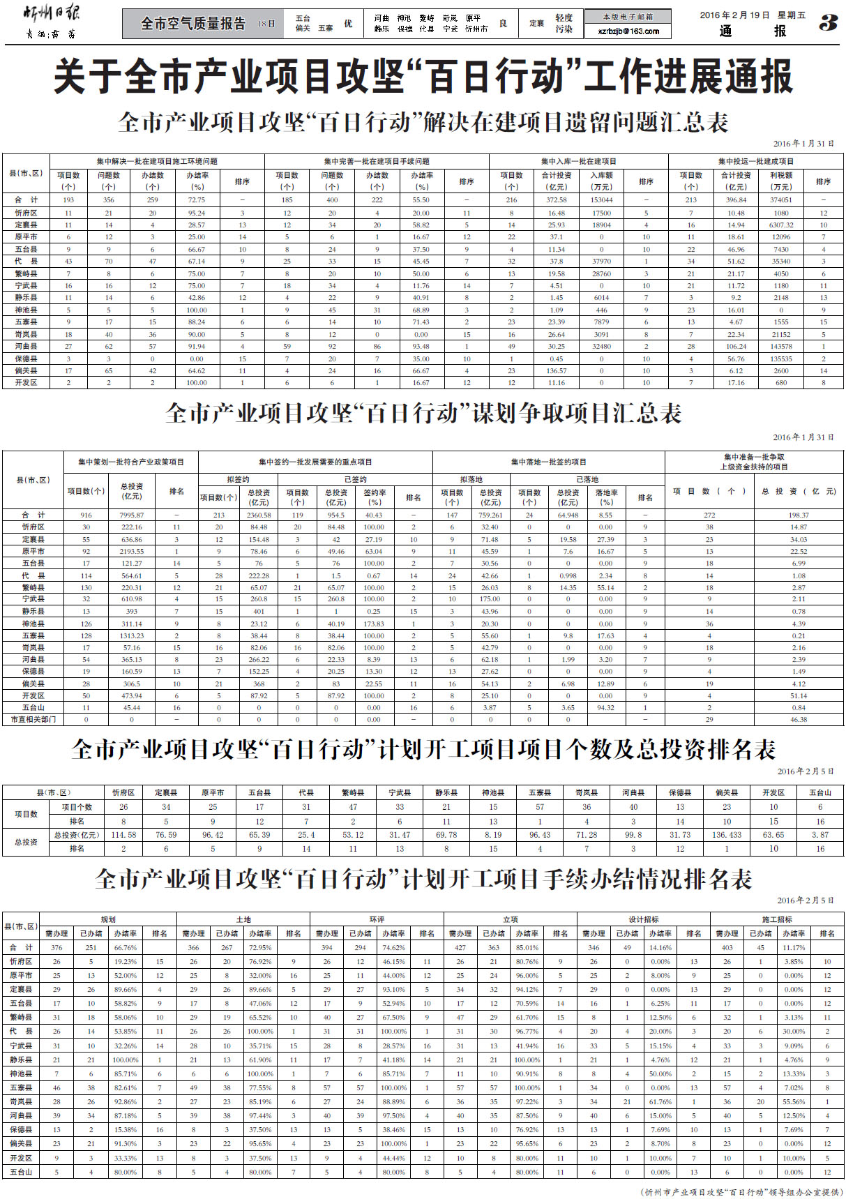 忻州市對產(chǎn)業(yè)項(xiàng)目攻堅(jiān)“百日行動(dòng)”工作進(jìn)行通報(bào)