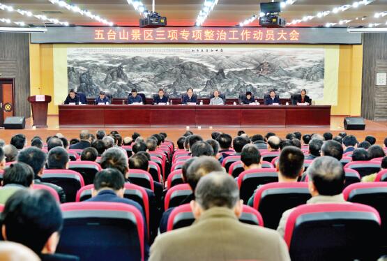 圖為五臺山景區(qū)三項(xiàng)專項(xiàng)整治工作動員大會會場。(范濤 攝)