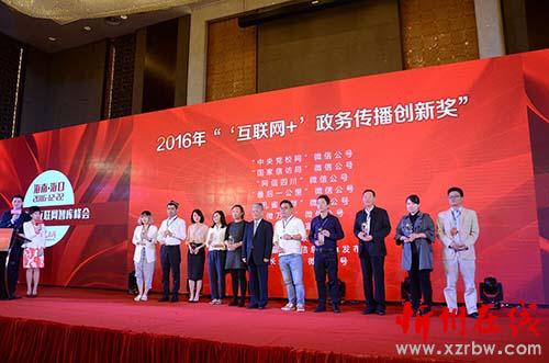 本報(bào)訊 12月22日,首屆全國互聯(lián)網(wǎng)智庫峰會(huì)暨第四屆網(wǎng)絡(luò)輿情論壇在海南省??谑新≈卣匍_。中央及各?。ㄊ小⒆灾螀^(qū))宣傳和網(wǎng)信部門領(lǐng)導(dǎo)、國內(nèi)業(yè)界知名專家、學(xué)者、政務(wù)新媒體代表等200余人齊聚一堂,圍繞“‘十三五’供給側(cè)改革背景下輿論新格局”主題,深入探討互聯(lián)網(wǎng)內(nèi)容建設(shè)與供給、政務(wù)輿情回應(yīng)和引導(dǎo)的新理念、新思路、新格局。會(huì)議期間,舉行了2016年“互聯(lián)網(wǎng)+政務(wù)傳播創(chuàng)新獎(jiǎng)”、“政務(wù)輿情回應(yīng)優(yōu)秀獎(jiǎng)”、“城市新媒體傳播優(yōu)秀獎(jiǎng)”和“全國政法新媒體建設(shè)優(yōu)秀獎(jiǎng)”頒獎(jiǎng)儀式。忻州隨手拍榮獲2016年全國“互聯(lián)網(wǎng)+政務(wù)傳播創(chuàng)新獎(jiǎng)”,為十佳之一。