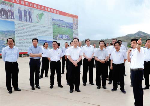 圖為省人大常委會副主任、市委書記李俊明帶領(lǐng)觀摩人員在五臺縣特色農(nóng)業(yè)產(chǎn)業(yè)扶貧陽白現(xiàn)代農(nóng)業(yè)循環(huán)園區(qū)聽取情況介紹。本報記者 劉紀森 攝