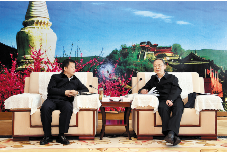 市委書記鄭連生會見山西文旅集團董事長王文保。 本報記者 劉紀森 攝