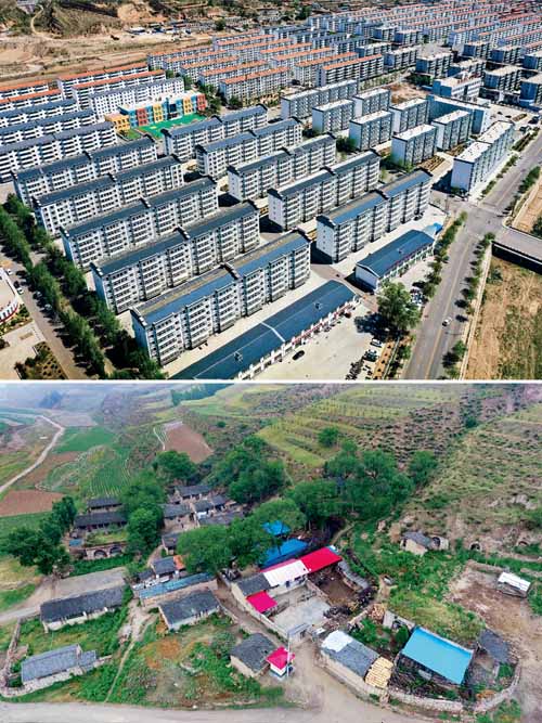 近年來,山西堅(jiān)持抓減負(fù)、重落實(shí),把基層工作聚焦到鄉(xiāng)村振興與脫貧攻堅(jiān)、社區(qū)服務(wù)與基層治理、服務(wù)中心與保障大局上來。目前,山西全省58個貧困縣已全部摘帽,3350個深度貧困自然村整體搬遷全部完成。圖片為拼版照片,上圖為2020年5月20日拍攝的山西省忻州市岢嵐縣廣惠園移民新區(qū),下圖為2017年6月22日拍攝的岢嵐縣趙家洼村,部分趙家洼村村民目前已搬遷居住到了廣惠園移民新區(qū)。 新華社記者 曹陽/攝