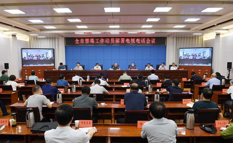 全市禁毒工作動(dòng)員部署電視電話會(huì)議。劉紀(jì)森 攝