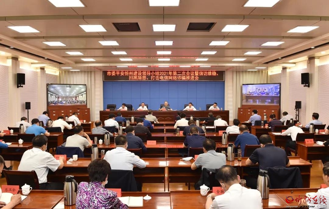 市委平安忻州建設(shè)領(lǐng)導(dǎo)小組2021年第二次會(huì)議暨信訪維穩(wěn)、掃黑除惡、打擊電信網(wǎng)絡(luò)詐騙推進(jìn)會(huì)會(huì)場(chǎng)。馮曉磊 攝