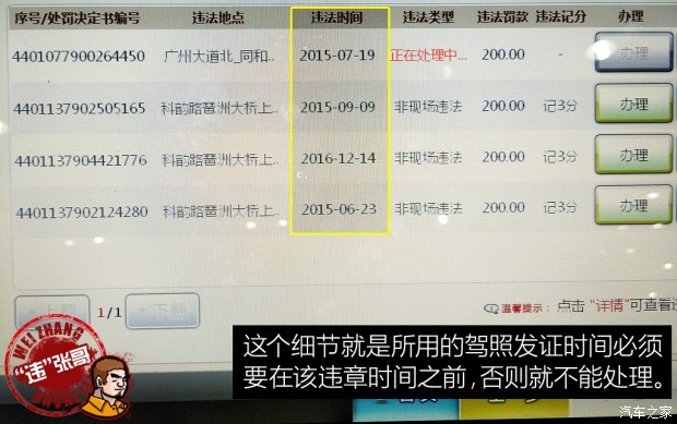 其實這個很好理解,以我這次經歷為例。我女朋友拿到駕照的時間是2015年9月份,那她這個駕照就不能用來處理在2015年9月份之前發(fā)生的違章??捎捎谥皼]注意到這個細節(jié),使得自己再次陷入困惑之中。這里給大家一個建議,可以用自己的駕照先把早期的違章處理,這樣周轉的余地就相對大很多了。而粗心的我只能再找其他朋友了,最后總算把分湊齊。