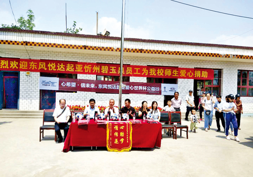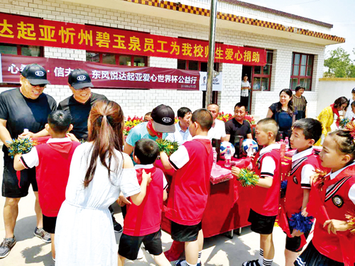 2018年6月2日“心希望信未來”東風(fēng)悅達(dá)起亞世界杯公益行活動如期成功舉行。本次活動由東風(fēng)悅達(dá)起亞廠家冠名支持,由忻州碧玉泉公司員工、部分保有客戶及家屬、意向客戶及媒體工作人員共60多人和代縣兩界溝小學(xué)全體師生共同參與。
