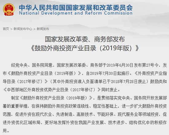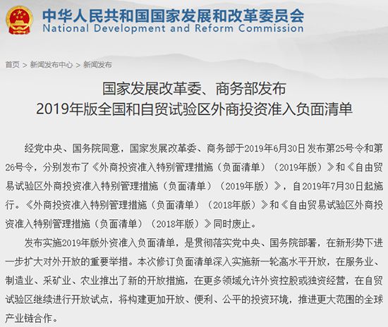 昨日,國家發(fā)展改革委、商務(wù)部連續(xù)發(fā)布了第25號令、第26號令和第27號令,分別發(fā)布了《外商投資準(zhǔn)入特別管理措施(負(fù)面清單)(2019年版)》(以下簡稱《外資準(zhǔn)入負(fù)面清單》)、《自由貿(mào)易試驗(yàn)區(qū)外商投資準(zhǔn)入特別管理措施(負(fù)面清單)(2019年版)》(以下簡稱《自貿(mào)試驗(yàn)區(qū)負(fù)面清單》)以及《鼓勵外商投資產(chǎn)業(yè)目錄(2019年版)》(以下簡稱《外商投資目錄》)。