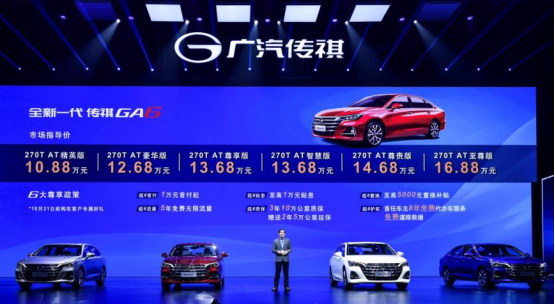 8月23日,全新一代傳祺GA6在成都正式上市。全新一代傳祺GA6帶來了6個版本,提供赤焰紅、冰海藍(lán)、珠光白、鈦金色、典雅黑、星光銀等6種顏色,售價為10.88萬元-16.88萬元,另有6大尊享政策:凡在10月31日前購買新車,可享受1萬元起首付、至高1萬元貼息、至高5000元置換補貼、5年免費無限流量,以及3年10萬公里質(zhì)保+贈送2年5萬公里延保,首任車主還享受8年免費代步車服務(wù)+免費道路救援。