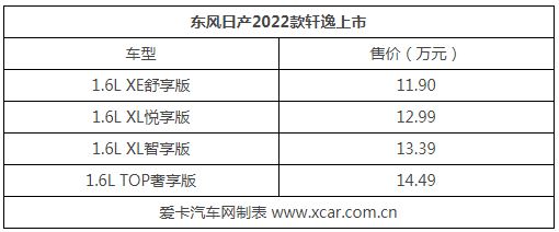 現(xiàn)款在售的軒逸為第14代車型,2022款軒逸延續(xù)了現(xiàn)款設(shè)計的同時,針對配置進(jìn)行調(diào)整,頂配車型的售價也由14.3萬元調(diào)整至14.49萬元,價格上調(diào)了1900元。