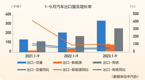 在國內(nèi)市場快速增長的同時,新能源汽車也在持續(xù)推動出口市場的發(fā)展。9月,新能源汽車國內(nèi)銷量80.8萬輛,環(huán)比增長6.9%,同比增長22.8%;新能源汽車出口9.6萬輛,環(huán)比增長6.5%,同比增長92.8%。1~9月,新能源汽車國內(nèi)銷量545.3萬輛,同比增長30.5%;新能源汽車出口82.5萬輛,同比增長1.1倍。