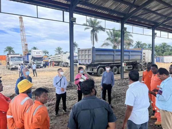 東風(fēng)人員在尼日利亞CNG牽引車工地現(xiàn)場與客戶交流