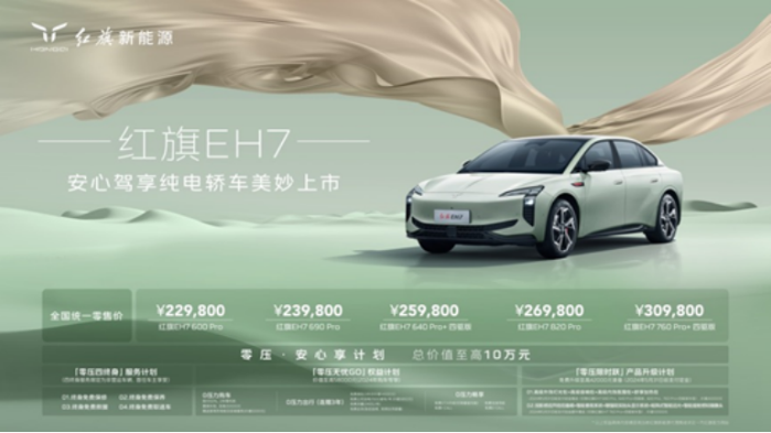 隨著環(huán)保意識(shí)的提升和新能源技術(shù)的飛速發(fā)展,新能源汽車成為全球汽車產(chǎn)業(yè)發(fā)展的新方向。紅旗新能源緊隨時(shí)代潮流,于3月20日在深圳舉辦“安心駕享·紅旗EH7上市發(fā)布會(huì)”,推出了其在新能源領(lǐng)域的里程碑產(chǎn)品——紅旗EH7,全國(guó)統(tǒng)一零售價(jià)為22.98萬(wàn)-30.98萬(wàn)元。這款車的推出,不僅增強(qiáng)了紅旗新能源的市場(chǎng)競(jìng)爭(zhēng)力,也為汽車行業(yè)的綠色轉(zhuǎn)型和技術(shù)革新樹(shù)立了新典范。