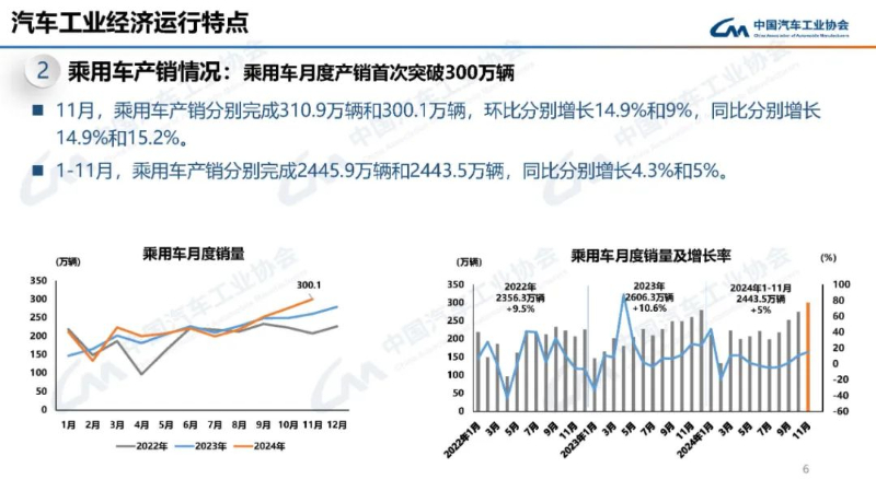 | 中汽協(xié):11月乘用車月度產銷首次突破300萬輛,新能源車產銷突破150萬輛 |