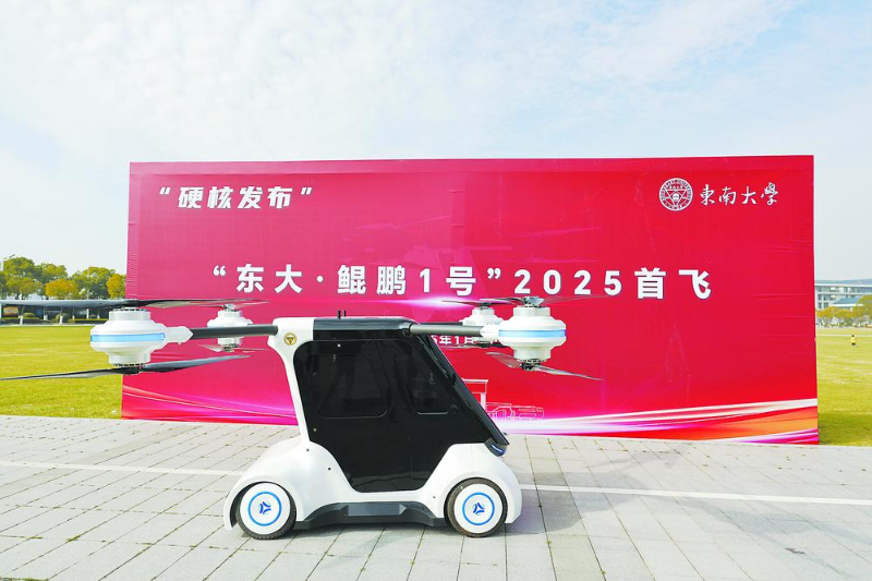 “這款陸空一體的飛行汽車以汽車為主要載體,而非當(dāng)下以無人機(jī)為主技術(shù)路線。它可以在地面行駛與飛行移動間隨意切換。”該項(xiàng)目負(fù)責(zé)人、東南大學(xué)機(jī)械工程學(xué)院教授殷國棟介紹,傳統(tǒng)電動垂直起降飛行器(eVTOL)不具備地面移動能力;而“東大·鯤鵬1號”為陸空一體構(gòu)型,兼具地面運(yùn)載裝備的快速移動與空中運(yùn)載裝備的靈活移動能力。同時(shí),“東大·鯤鵬1號”集多項(xiàng)創(chuàng)新技術(shù)于一身,突破了陸空一體化車身結(jié)構(gòu)拓?fù)鋬?yōu)化、動力系統(tǒng)全域冗余機(jī)制、多模態(tài)交互數(shù)字化座艙、跨域共用多維數(shù)據(jù)融合、陸空分布式電驅(qū)動系統(tǒng)以及雙阿克曼協(xié)同轉(zhuǎn)向等關(guān)鍵技術(shù)。