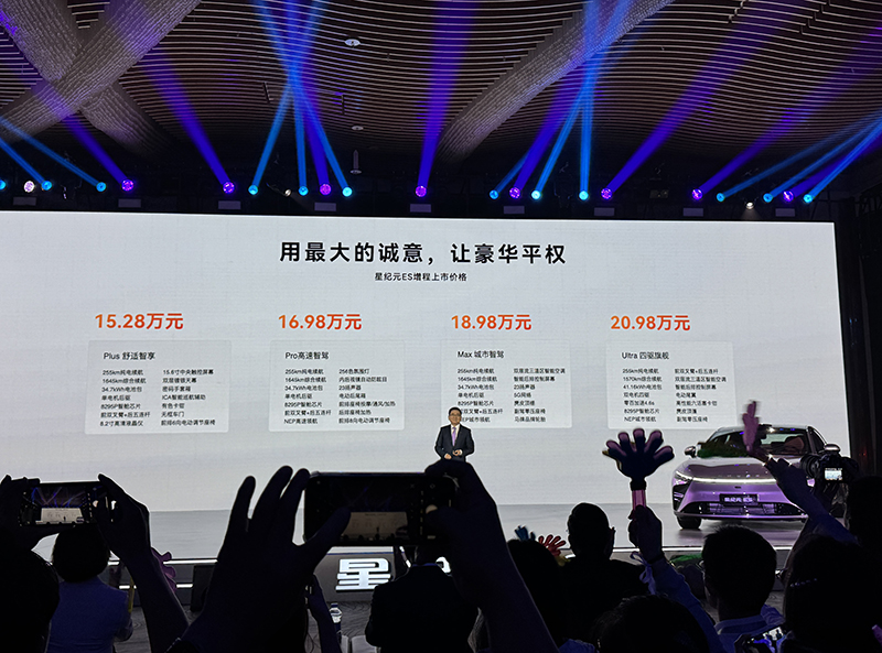 此次星紀(jì)元ES增程共推出四個版本,分別是Plus舒適智享15.28萬元、Pro高速智駕16.98萬元、Max城市智駕18.98萬元、Ultra四驅(qū)旗艦20.98萬元。上市期間下定并鎖單的用戶可享受七大權(quán)益,包含至高價值53000元的四大權(quán)益,分別為價值30000元NEP全場景智駕功能終身免費(fèi)使用的智駕禮(限Max城市智駕和Ultra四驅(qū)旗艦)、價值10000元的3年0息金融方案的金融禮、價值10000元免費(fèi)升級超享豪華包(限Pro高速智駕)的升級禮、價值3000元限時2000元升級價值5000元晨曦紅和極光紫個性外觀色的炫彩禮,還有質(zhì)保禮、流量禮、救援禮三大權(quán)益,將用戶權(quán)益最大化。
