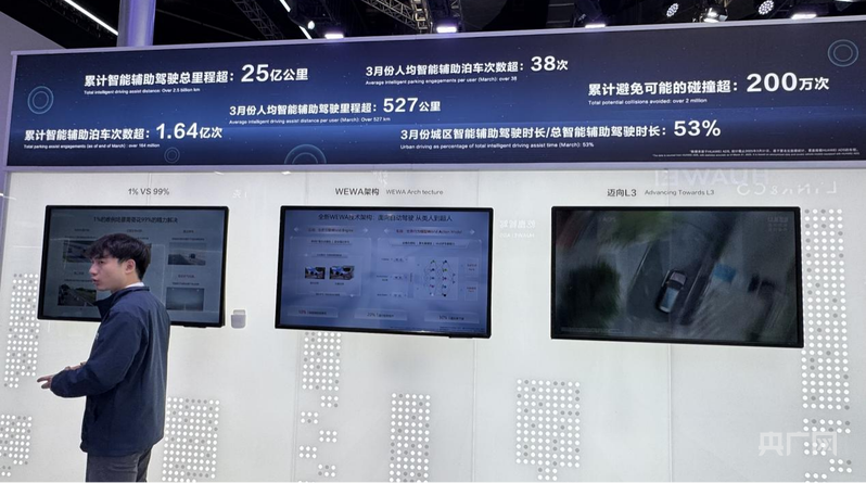 華為乾崑展臺上的宣傳術(shù)語。(央廣網(wǎng)記者董楠 攝)