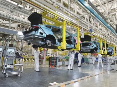 東風(fēng)本田位于武漢經(jīng)開(kāi)區(qū)的新能源工廠智能生產(chǎn)線。張家振/攝影