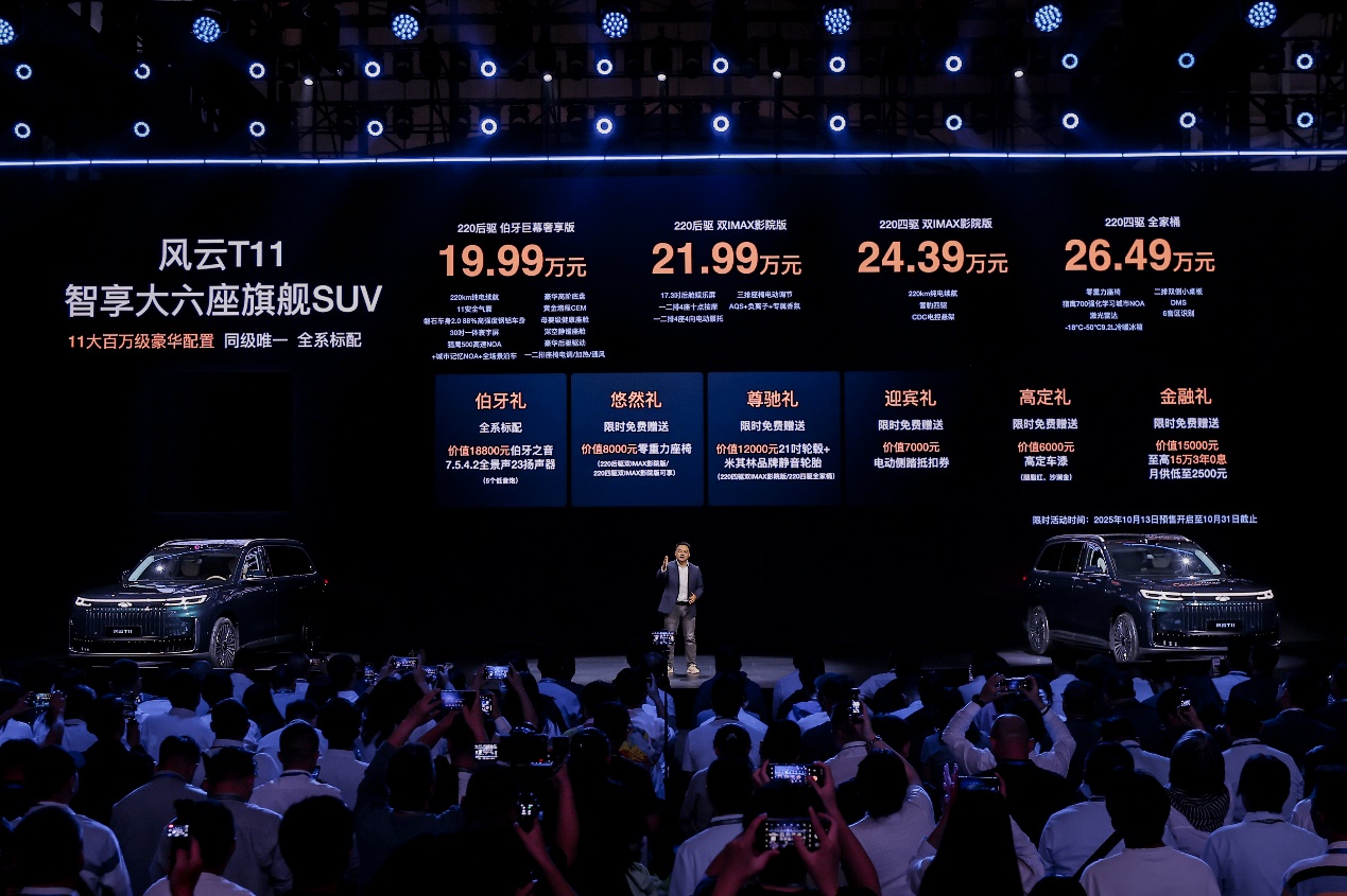 10月13日,以“兌現(xiàn)”為主題的風(fēng)云T11家庭品鑒日暨預(yù)售發(fā)布會(huì)在安徽蕪湖圓滿收官。作為風(fēng)云品牌煥新后的首款旗艦級(jí)SUV,風(fēng)云T11定位為“智享大六座旗艦SUV”。新車以“頂格對(duì)標(biāo)”為理念,憑借“超大更好”四大核心價(jià)值、三大沉浸式場(chǎng)景與11大全系標(biāo)配,兌現(xiàn)用戶對(duì)品質(zhì)生活的全維期待。