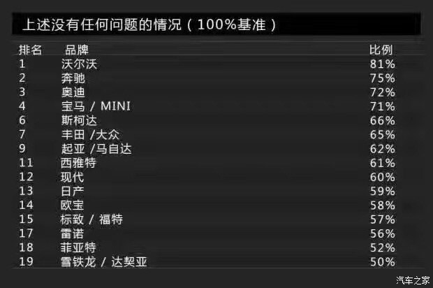 近來把北歐奢華風發(fā)揮至極致的沃爾沃同樣表現(xiàn)不差,在瑞典人注重用料的堅持下得到最多德國人青睞,在所有汽車品牌中滿意度最高。第二名則是奧迪,得分為6分,而MINI竟然贏過奔馳得了第三,寶馬及大眾則列居第五。而滿意度最低的則是達契亞,它的得分為29分。那么問題來了,坐在達契亞里面的車主與活在霾底下的人,誰更幸福?
