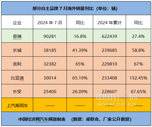 數(shù)據(jù)顯示,7月,長城、吉利、比亞迪和長安的海外銷量分別為38185輛、32382輛、30014輛、25400輛,同比分別增長41.39%、65%、65.19%、26.09%;前7個月的累計銷量分別為239685輛、229810輛、233408輛、228607輛,同比分別增長58.8%、67%、152.45%、67.65%。(中國經(jīng)濟網(wǎng)記者 王躍躍)