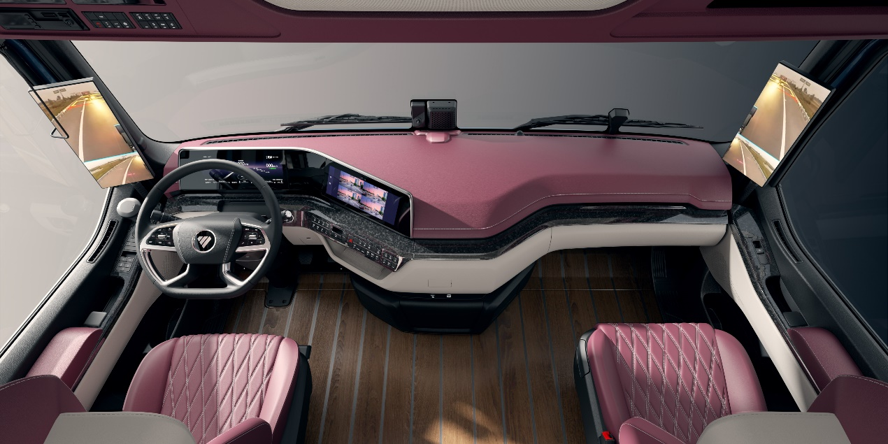 智能化方面,歐曼銀河9系列車型推出了重卡行業(yè)最多、功能最全、等級最高的智能駕駛配置清單,供用戶自由選擇。首批智能車型搭載10個攝像頭、5個毫米波雷達(dá)、1個激光雷達(dá)和1個高算力域控制器,實(shí)現(xiàn)車輛HWP高速領(lǐng)航等28+智駕功能。同時,歐曼銀河9還搭載了行業(yè)頂級的智能座艙系統(tǒng),涵蓋800項(xiàng)以上的信息娛樂功能、400項(xiàng)以上的車云網(wǎng)聯(lián)信息和500項(xiàng)以上的信息安全防護(hù)措施,全面覆蓋商用車“行車駕駛”“停車休息”和“車輛管理”的三大應(yīng)用場景,完美實(shí)現(xiàn)了駕駛員與車輛的全面交互與掌控,讓用戶的每一段行程都盡享領(lǐng)先的智能科技體驗(yàn),實(shí)現(xiàn)國內(nèi)高端重卡從智能走向智慧的躍階。