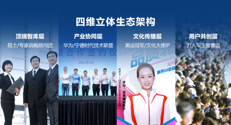 “品牌摯友計(jì)劃”是北汽集團(tuán)“品牌三年躍升行動”的重要引擎,構(gòu)建一個“四維立體生態(tài)”:頂端智庫層,邀請?jiān)菏?、專家、?jīng)濟(jì)學(xué)家組成戰(zhàn)略顧問團(tuán);產(chǎn)業(yè)協(xié)同層,與華為、寧德時代等合作伙伴共建技術(shù)品牌聯(lián)盟;文化傳播層,攜手奧運(yùn)冠軍、文化名人打造"美好出行大使"IP;用戶共創(chuàng)層,建立萬人級車主智囊團(tuán)。除了外部資源,品牌摯友計(jì)劃還將逐步拓展至20位內(nèi)部管理者及300名KOE員工。
