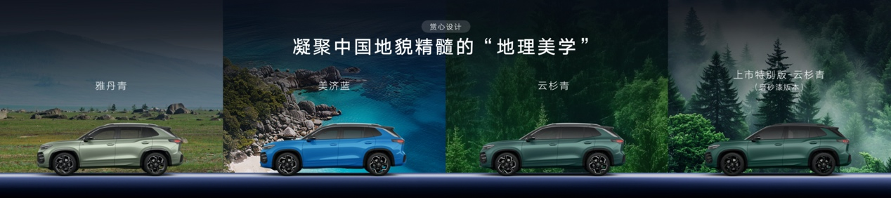 車身顏色上,全新探岳L開創(chuàng)性構(gòu)建“地理美學(xué)”色系,以“6+1 色彩哲學(xué)”,凝聚中國地貌精髓,其中雅丹青和美濟(jì)藍(lán)均是大眾品牌中國區(qū)首次采用顏色。