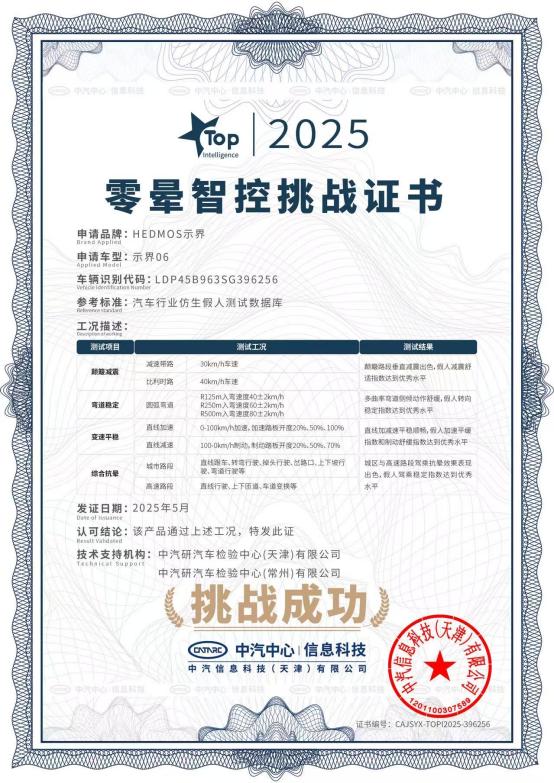 近期,在行業(yè)首次的暈動(dòng)仿生假人零暈智控挑戰(zhàn)中,示界06展現(xiàn)了優(yōu)異的駕控表現(xiàn)。中國汽車研究中心有限公司高級工程師趙博文在發(fā)布會(huì)現(xiàn)場公布測試數(shù)據(jù)時(shí)指出:“通過精準(zhǔn)的電機(jī)扭矩動(dòng)態(tài)分配、法系底盤調(diào)?;?,以及搭載的‘零暈智控’技術(shù)體系,示界06在六維駕控測試中表現(xiàn)出行業(yè)優(yōu)秀水平?!睖y試結(jié)果顯示,示界06完美實(shí)現(xiàn)了“6不”卓越體驗(yàn):簸路不顛、彎道不飄、加速不竄、減速不抖、駕乘不暈、長途不累,為行業(yè)樹立了駕乘舒適新標(biāo)桿。