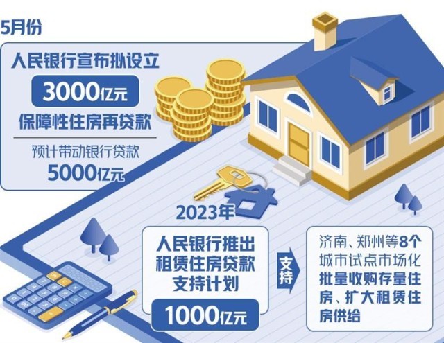 5月,人民銀行宣布擬設(shè)立3000億元保障性住房再貸款,按照“政府主導(dǎo)、市場化運(yùn)作”的思路,由中國人民銀行提供低成本再貸款資金,激勵21家全國性銀行機(jī)構(gòu)按照市場化、法治化原則,支持地方國有企業(yè)以合理價格收購已建成存量商品房,用作配售型或配租型保障性住房,預(yù)計帶動銀行貸款5000億元。