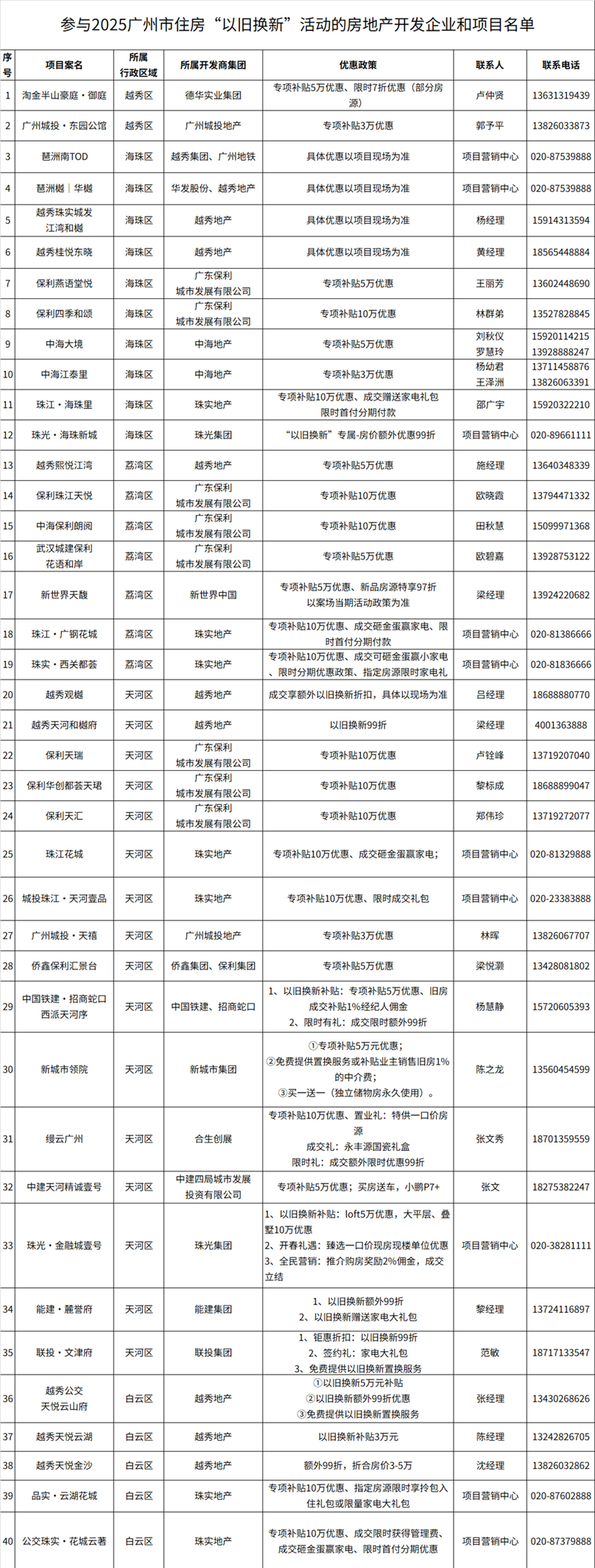 本次活動首批吸引超40家房企、近70個項目參與,覆蓋剛需、改善、高端全產(chǎn)品線,并推出“折上折”“無憂退訂”“家裝大禮包”等疊加優(yōu)惠。廣州市房協(xié)將依托“廣州市房地產(chǎn)行業(yè)協(xié)會”官方微信小程序搭建線上服務平臺,實現(xiàn)房源智能匹配、補貼申領(lǐng)、政策咨詢等功能,進一步優(yōu)化市民換房體驗。