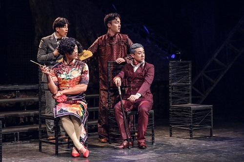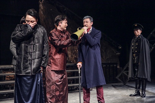 在荒誕悲喜劇《造王府》中,五位掌握金錢和話語權(quán)的達(dá)官貴人爾虞我詐,明爭暗斗。而作為全劇發(fā)展的一條副線,楊婉兒和張署長及馬副官的三角戀情也讓觀眾又恨又憐,都說戲子無情,可這無情之人卻因“有情”成為貪官手里的替罪羊。因孽緣因執(zhí)迷因一念之間,貪愛恨貪名利貪徒有虛表,是非可以顛倒,善惡難以分辨。最終,觀眾苦苦等待的真像也未能到來?!对焱醺纷屇阕呷牖奶评锏寞偪駚y世,又見證亂世中的愛恨孽長。