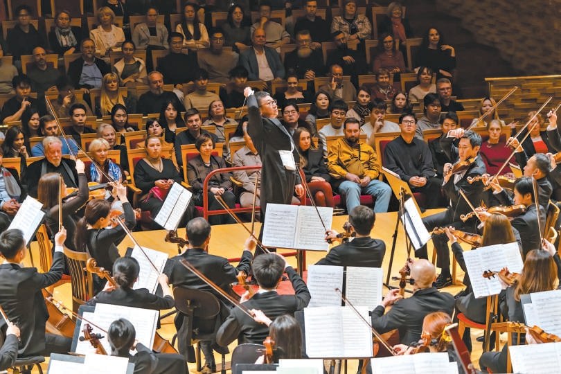 李心草執(zhí)棒國(guó)家大劇院管弦樂團(tuán)登臺(tái)馬林斯基劇院。牛小北 攝