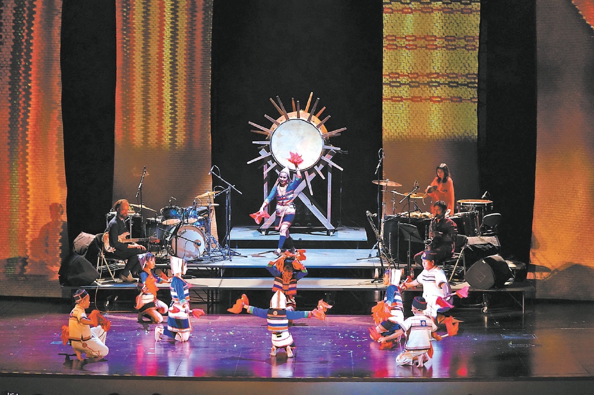 10月12日晚,一場將云南深山原始生命力融合跨越時空藝術(shù)想象力的演出登上北京舞臺。作為第二十八屆北京國際音樂節(jié)的重磅演出之一,由普利策音樂獎得主、華人作曲家杜韻傾力創(chuàng)作,北京國際音樂節(jié)與美國林肯中心聯(lián)合委約的音樂劇場作品《刻在森林的?!吩诒本┫矂≡菏澜缡籽?。來自云南西雙版納的非遺項目基諾族大鼓舞傳承人何桂英,帶領(lǐng)8位基諾族少年,在舞臺上敲響大山里特有的聲音。