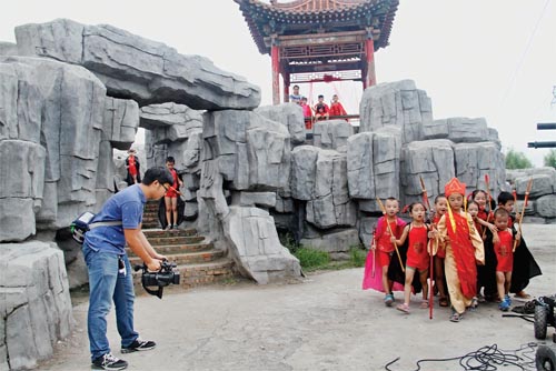 8月18日,原平市白路口才主持藝術(shù)班的小學(xué)員出演的魔幻微電影《大戰(zhàn)紅孩兒》在該市牛臥河公園開機。此次演出活動目的是培養(yǎng)孩子的想象力、幽默感,同時提高他們在演藝方面的能力與藝術(shù)修養(yǎng),讓他們擁有積極健康的心態(tài),敢于表現(xiàn)自我、挑戰(zhàn)自我、超越自我,在生活、學(xué)習(xí)上打下良好基礎(chǔ)。據(jù)了解,影片制作完成后將在優(yōu)酷等網(wǎng)絡(luò)進行播放。